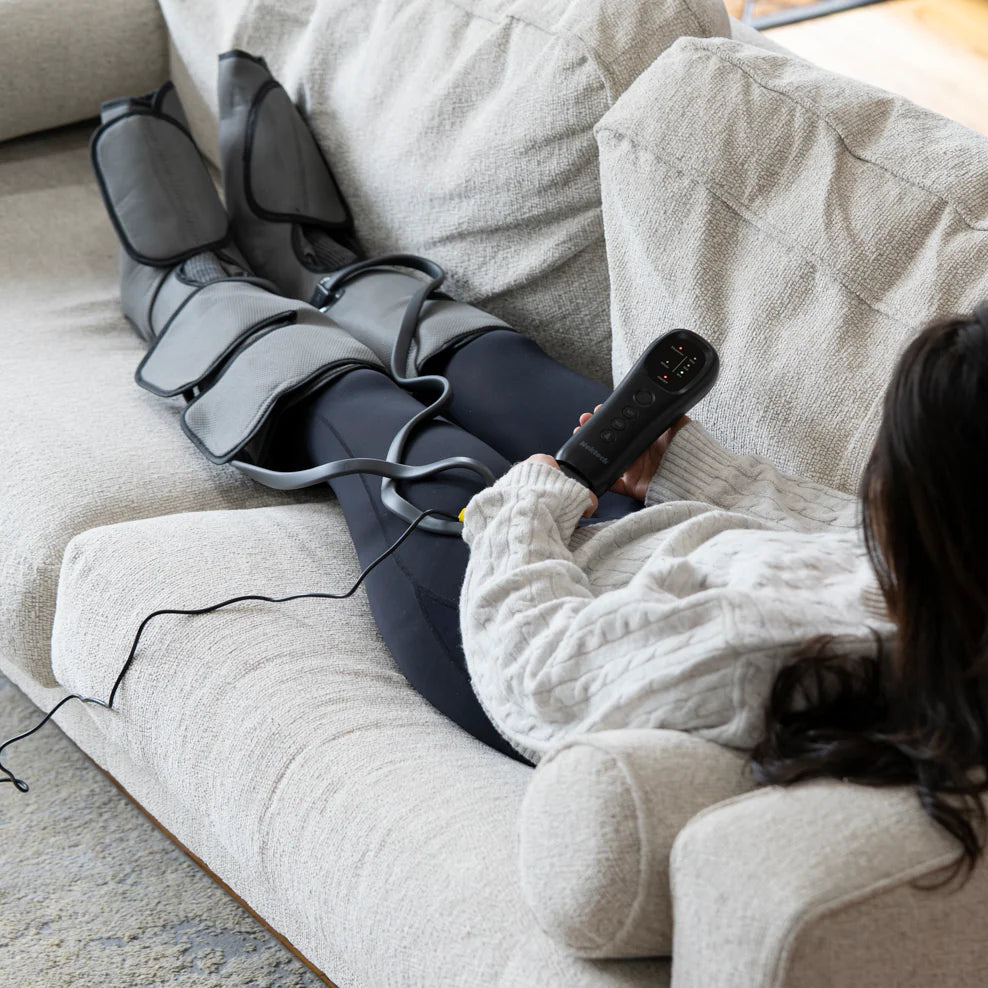 The device uses innovative compression technology to apply rhythmic pressure to your legs, enhancing blood circulation and relieving sore muscles. It's designed to mimic a professional massage, helping you relax after a long day or intense workout.